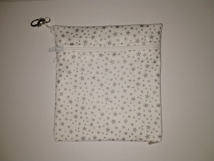 Priročen etui za shranjevanje maske z obeskom – sponko. Maska bo lahko lepo pospravljena in čista, seveda pa ga lahko uporabite tudi kot drobižnico ali pa za drobnarije, ki se zgubljajo po torbici. Na sponko lahko pripnete ključe ali kakšen drug okrasek ali pa si etui pripnete na torbico ali na zanko za pas. Zašita iz dveh slojev 100% bombažne tkanine (oeko tex 100 certifikat). Priporočeno pranje pri 60°C (zaradi obeska priporočam ročno ali obrnjeno).