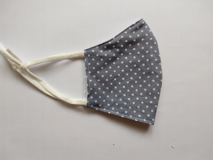 Modna zaščitna maska, ročno zašita, dvoslojna, iz 100 % bombaža  (oeko-tex standard 100), z všito žičko v predelu nosu in elastičnimi, nastavljivimi trakovi, obojestranska. Priporočeno pranje pri 60°C