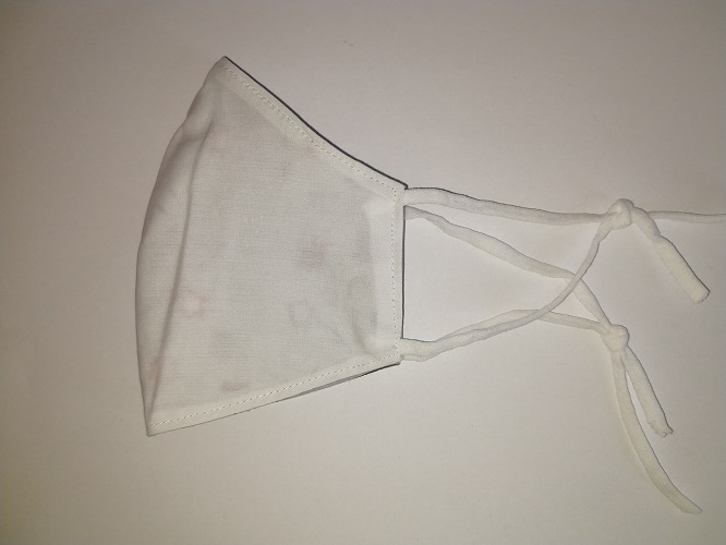 Modna zaščitna maska, ročno zašita, dvoslojna, iz 100 % bombaža  (oeko-tex standard 100), z všito žičko v predelu nosu in elastičnimi, nastavljivimi trakovi, obojestranska. Priporočeno pranje pri 60°C