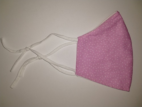 Modna zaščitna maska, ročno zašita, dvoslojna, iz 100 % bombaža  (oeko-tex standard 100), z všito žičko v predelu nosu in elastičnimi, nastavljivimi trakovi, obojestranska. Priporočeno pranje pri 60°C