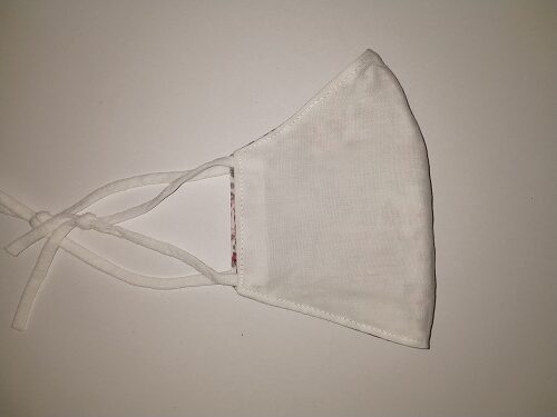 Modna zaščitna maska, ročno zašita, dvoslojna, iz 100 % bombaža  (oeko-tex standard 100), z všito žičko v predelu nosu in elastičnimi, nastavljivimi trakovi. Obojestranska. Priporočeno pranje pri 60°C