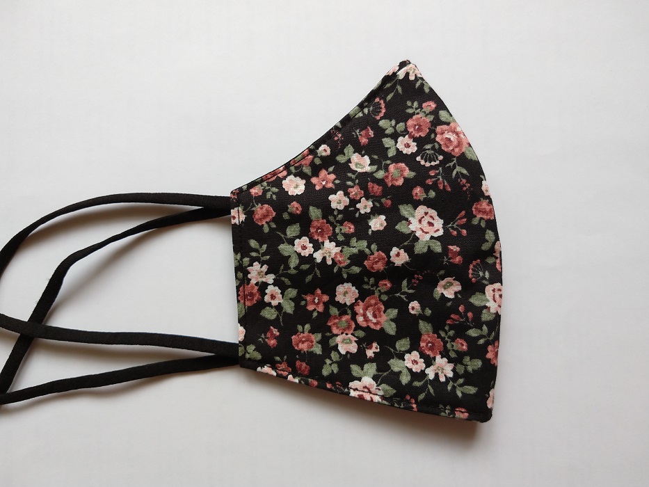 Modna zaščitna maska, ročno zašita, dvoslojna, iz 100 % bombaža  (oeko-tex standard 100), z všito žičko v predelu nosu in elastičnimi, nastavljivimi trakovi, obojestranska. Priporočeno pranje pri 60°C