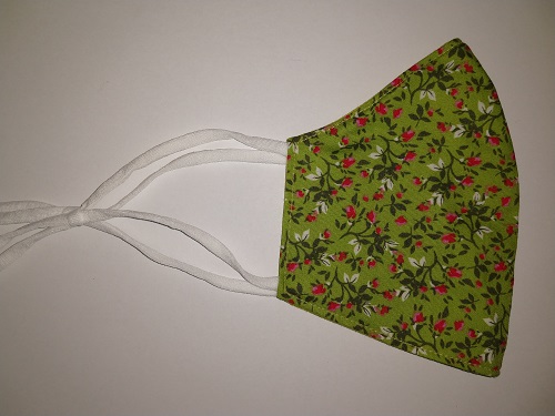 Modna zaščitna maska, ročno zašita, dvoslojna, iz 100 % bombaža  (oeko-tex standard 100), z všito žičko v predelu nosu in elastičnimi, nastavljivimi trakovi, obojestranska. Priporočeno pranje pri 60°C