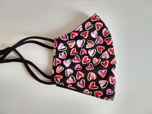 Modna zaščitna maska, ročno zašita, dvoslojna, iz 100 % bombaža  (oeko-tex standard 100), z všito žičko v predelu nosu in elastičnimi, nastavljivimi trakovi, obojestranska. Priporočeno pranje pri 60°C