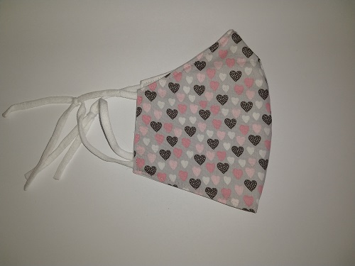 Modna zaščitna maska, ročno zašita, dvoslojna, iz 100 % bombaža  (oeko-tex standard 100), z všito žičko v predelu nosu in elastičnimi, nastavljivimi trakovi, obojestranska. Priporočeno pranje pri 60°C