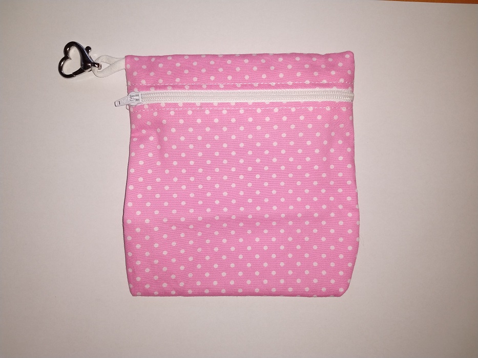 Priročen etui za shranjevanje maske z obeskom – sponko. Maska bo lahko lepo pospravljena in čista, seveda pa ga lahko uporabite tudi kot drobižnico ali pa za drobnarije, ki se zgubljajo po torbici. Na sponko lahko pripnete ključe ali kakšen drug okrasek ali pa si etui pripnete na torbico ali na zanko za pas. Zašita iz dveh slojev 100% bombažne tkanine (oeko tex 100 certifikat). Priporočeno pranje pri 60°C (zaradi obeska priporočam ročno ali obrnjeno).
