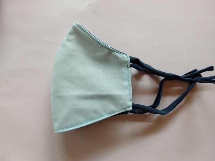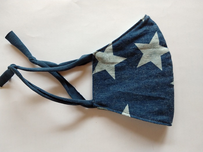 Modna zaščitna maska, ročno zašita, dvoslojna, iz 100 % bombaža  (oeko-tex standard 100), z všito žičko v predelu nosu in elastičnimi, nastavljivimi trakovi, obojestranska. Priporočeno pranje pri 60°C