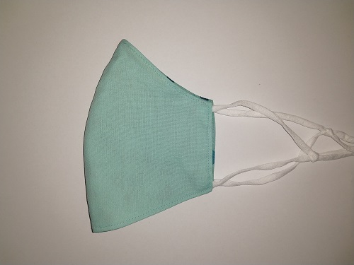 Modna zaščitna maska, ročno zašita, dvoslojna, iz 100 % bombaža  (oeko-tex standard 100), z všito žičko v predelu nosu in elastičnimi, nastavljivimi trakovi, obojestranska. Priporočeno pranje pri 60°C